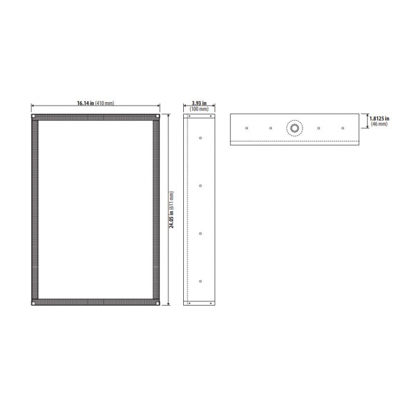 Szerokość: 16⅛" (410 mm) Wysokość: 241/16” (611 mm) Głębokość: 315/16” (100 mm)