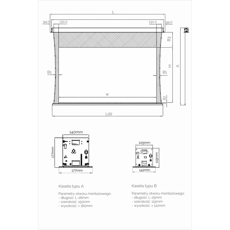 • Wysokość kasety do zabudowy tylko 119mm! (dla ekranów o szerokości 280cm i powyżej – 160mm),