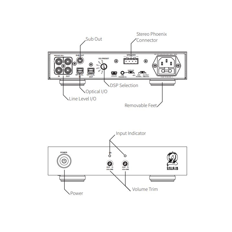 DSP2-200 oferuje neutralne, czyste wzmocnienie dla głośników o impedancji od 4 Ω wzwyż. Zawiera fabryczne presety DSP dla produktów Origin Acoustics i jest przystosowany do montażu w racku lub wewnątrz szafki. Połowa szerokości racka oraz wysokość 1U pozwalają na zamontowanie aż czterech urządzeń w przestrzeni zbliżonej do jednego tradycyjnego wzmacniacza.