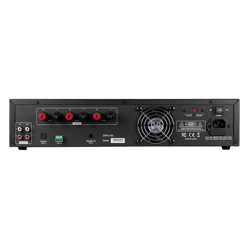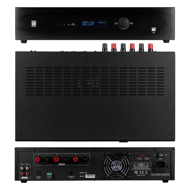 Nazwa DSP3-150 jest nieco myląca – wzmacniacz generuje łącznie 600 W czystego, wysokiej jakości dźwięku. Dwa kanały po 150 W i trzeci kanał o mocy aż 300 W. Trzeci kanał jest idealny do subwooferów architektonicznych, które często muszą pracować równolegle z głośnikami pełnopasmowymi. Najlepsze jest to, że wstępnie skonfigurowany DSP i zaawansowany edytor pozwalają dokładnie dopasować dźwięk do pomieszczenia, niezależnie od doświadczenia w obsłudze oprogramowania do korekcji.